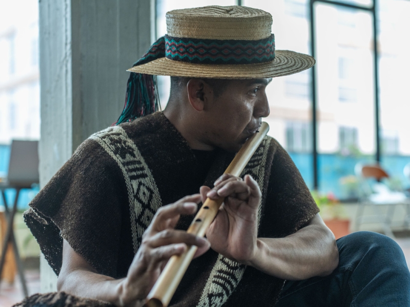 Entre las cuerdas de la jigra, está inspirada en las memorias de infancia de los integrantes de los colectivos y elementos significativos de la cultura Nasa como sus sonidos, relatos, danzas, entre otros elementos que se conjugan para crear un espacio de creación, juego colectivo y exploración para las niñas y los niños.