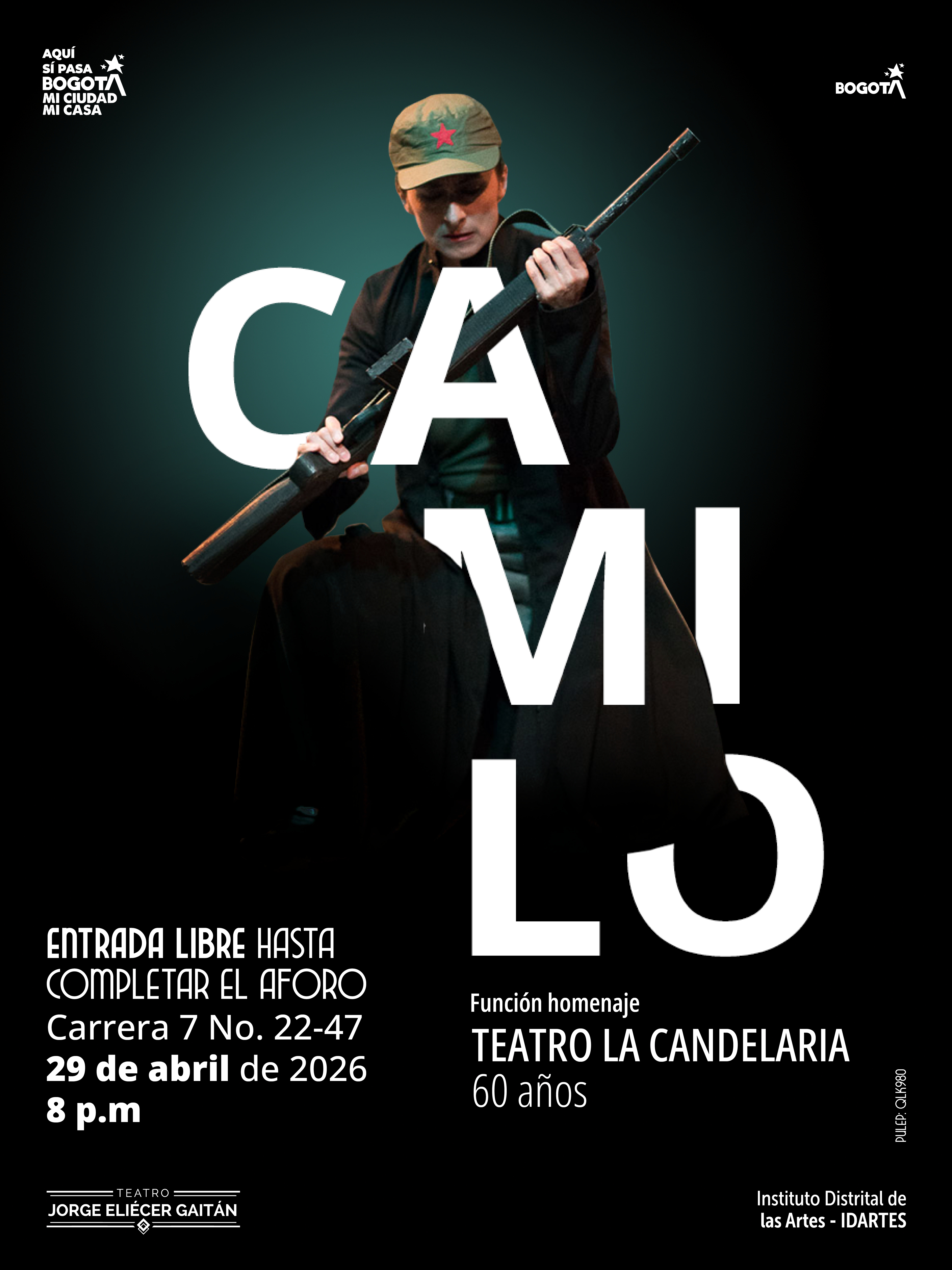 En el marco de la conmemoración de sus seis décadas de trayectoria, el Teatro La Candelaria, junto a la Red de Escenarios de Bogotá, invitan a la función homenaje de la obra Camilo, que se realizará el próximo 29 de abril a las 8 p.m. en el Teatro Jorge Eliécer Gaitán, con entrada libre. Esta presentación especial se inscribe en una celebración que reconoce el legado de una de las agrupaciones más influyentes del teatro latinoamericano y su permanente compromiso con la memoria y la reflexión social.