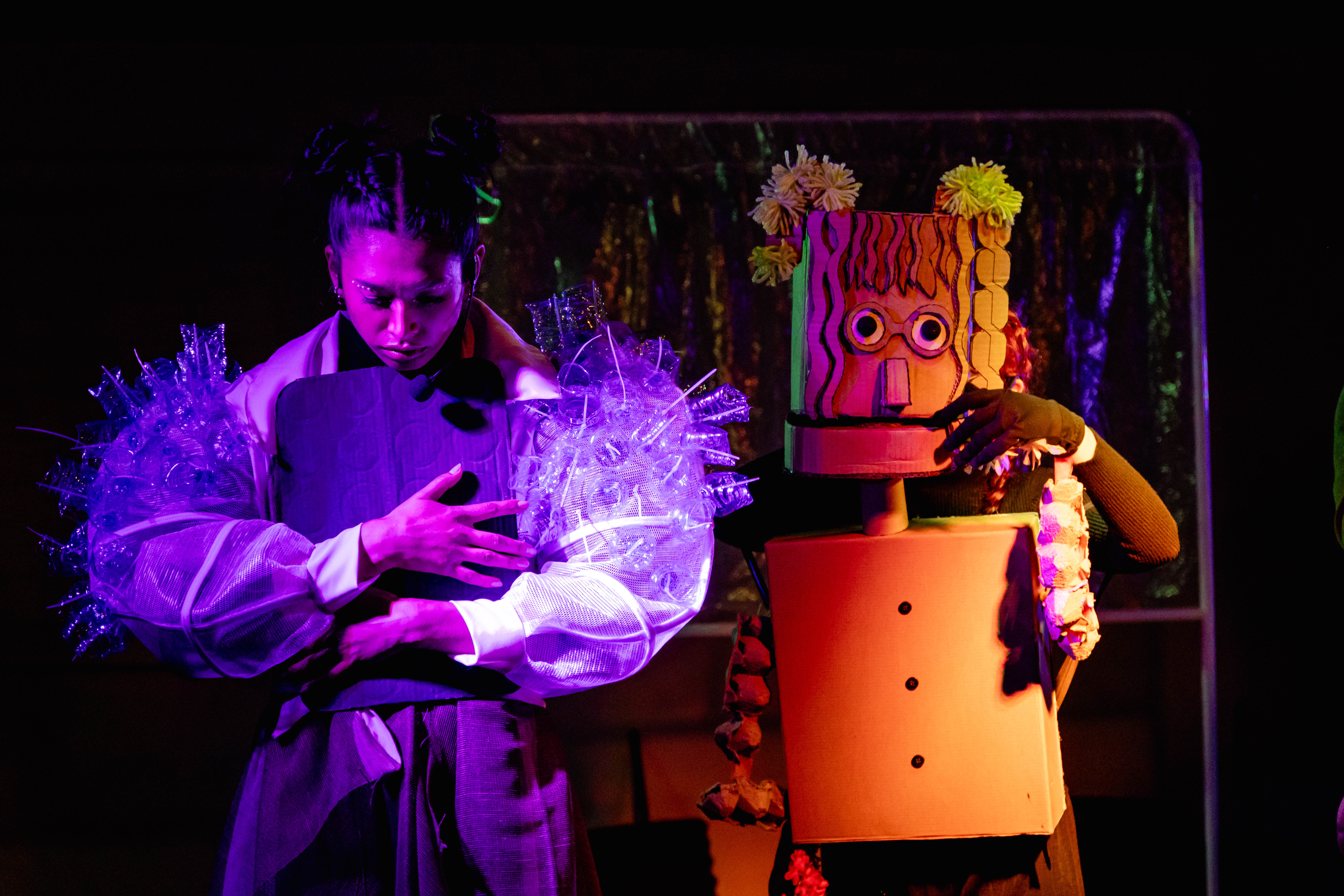 La historia, narrada desde la perspectiva de dos niños, sumerge al público en una experiencia sensible donde el cuidado del planeta es el protagonista. Lo que hace única a esta producción es su propuesta estética: cada títere, elemento escénico y pieza de vestuario ha sido diseñado a partir de materiales reciclados, dándole una segunda vida a objetos que alguna vez fueron considerados desechos.