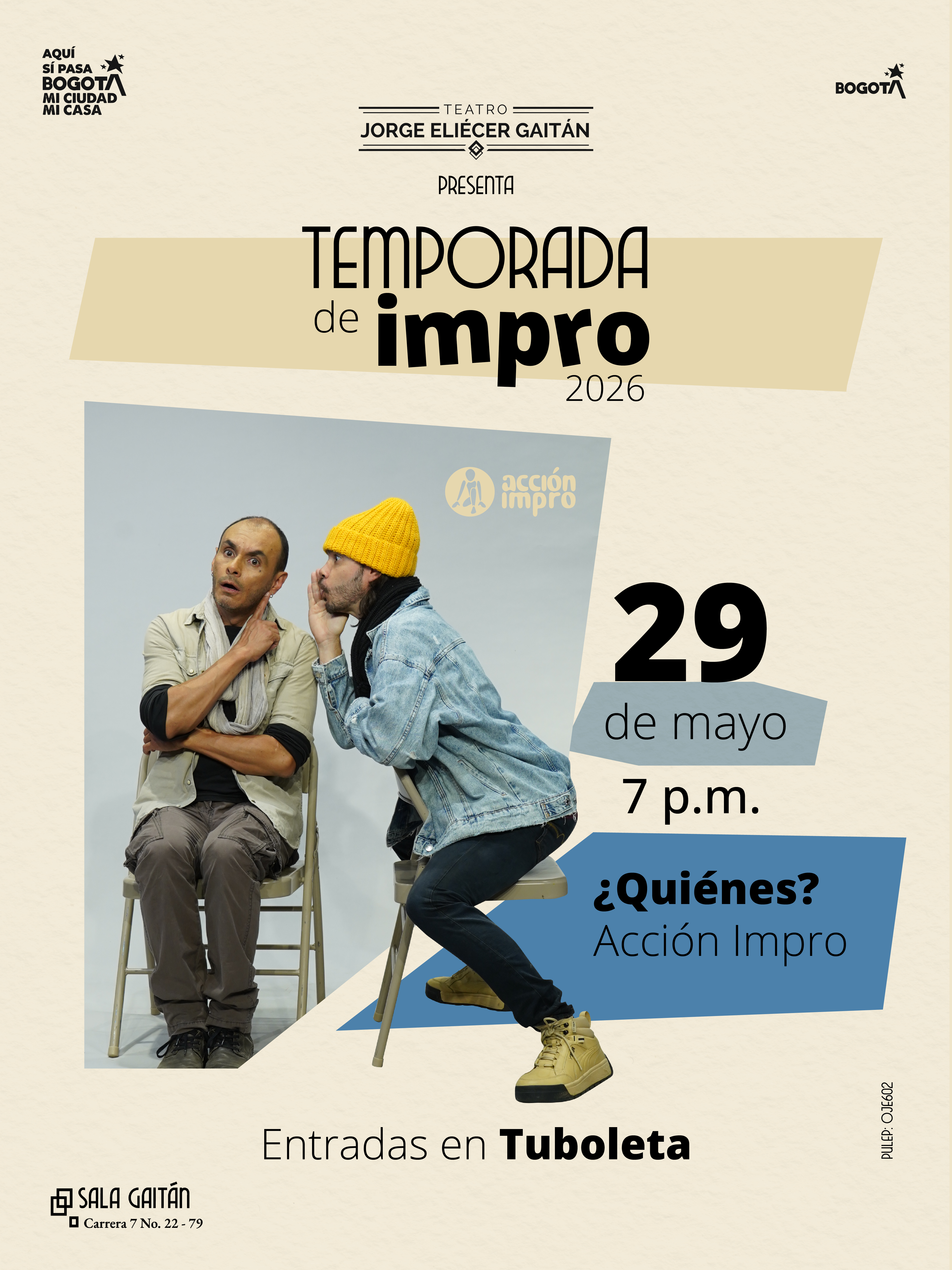 La Sala Gaitán del Teatro Jorge Eliécer Gaitán se prepara para recibir durante el mes de mayo la Temporada de Improvisación 2026, una apuesta escénica que celebra el teatro en su estado más puro: sin guión, sin certezas y con la creatividad como motor principal.